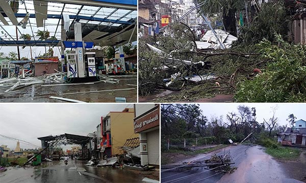 கடலூர், நாகை, காரைக்கால், திருவாரூரில் பெரும்பாலான பகுதிகளில் சூறைக்காற்றால் ஏராளமான மரங்கள் சாய்ந்தன. இதே போல் மின்கம்பங்க ளும் சேதமடைந்தன. காரைக்காலில் மின்மாற்றி மீது மரம் சாய்ந்து விழுந்ததில் மின்மாற்றி வெடித்துச் சிதறியது.