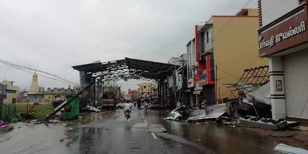 கடலூர், நாகை, காரைக்கால், திருவாரூரில் பெரும்பாலான பகுதிகளில் சூறைக்காற்றால் ஏராளமான மரங்கள் சாய்ந்தன. இதே போல் மின்கம்பங்களும் சேதமடைந்தன. காரைக்காலில் மின்மாற்றி மீது மரம் சாய்ந்து விழுந்ததில் மின்மாற்றி வெடித்துச் சிதறியது.