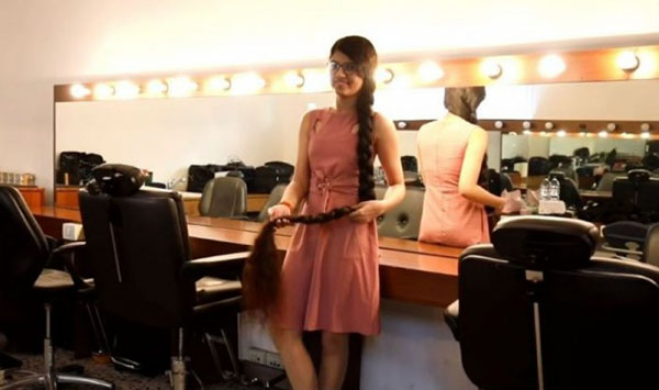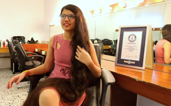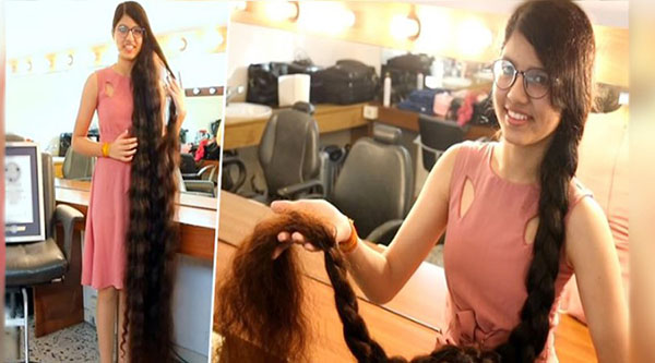 தலைமுடி வளர்த்து இளம்பெண் கின்னஸ் சாதனை!!