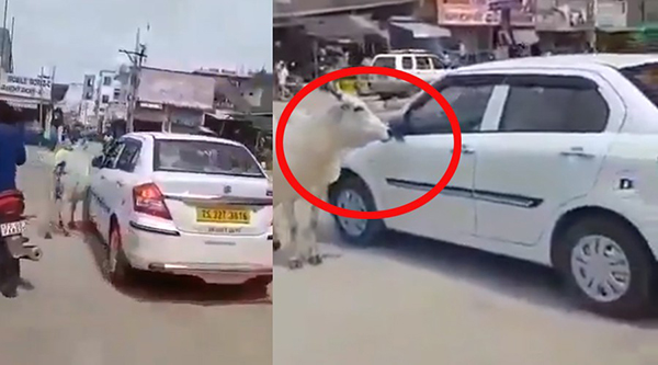 அவர் காரை நிறுத்தினால் பசுமாடு காரின் முன்பு வந்து நின்று காரை அங்கிருந்து செல்ல முடியாத வண்ணம் செய்தது.