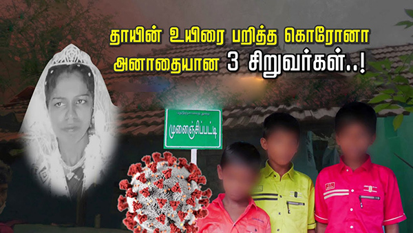 அதில் கிடைக்கும் சொற்ப வருமானத்தை வைத்து தனது மூன்று மகன்களை படிக்க வைத்து பிழைப்பை நடத்தி வந்தார் ஞான மரிய செல்வி இந்த நிலையில் இந்த குடும்பத்திற்கு கொரோனா அரக்கன் வடிவில் விழுந்துள்ளது அடுத்த பேரிடி. அண்மையில் கொரோனா வைரஸ் தொற்றால் பாதிக்கப்பட்டு சிகிச்சை பெற்று வந்த ஞான மரிய செல்வி சனிக்கிழமை சிகிச்சை பலனின்றி அரசு மருத்துவமனையில் உயிர் இழந்து விட மூன்று சிறுவர்களும் நிர்க்கதியான நிலையில் தவித்து வருகின்றனர்