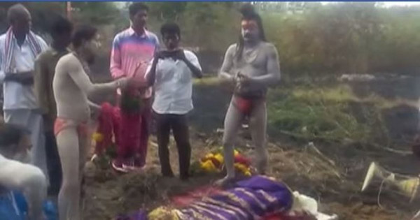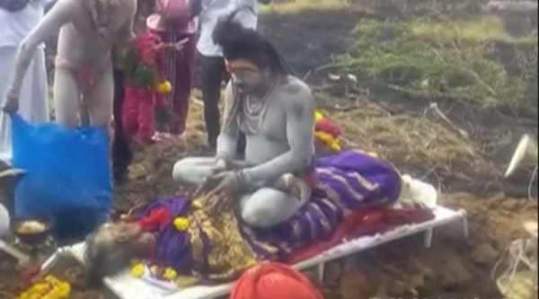 அதன் பின் உடலை அடக்கம் செய்தார். அகோரிகளின் இந்த விசித்த பூஜையானது அப்பகுதினரிடையே வியப்பை ஏற்படுத்தியது. அப்போது எடுக்கப்பட்ட வீடியோ தற்போது சமூகவலைத்தலங்களில் வைரலாகி வருகிறது.
