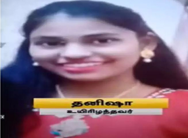 இதனால், சோகமாக இருந்த தனிஷா கழிவறைக்குள் சென்று உள்பக்கமாக கதவை பூட்டிக்கொண்டு உடலில் மண்ணெணெய் ஊற்றி தீ வைத்துக்கொண்டார். உடலில் தீ எரிந்த நிலையில் கதறி துடித்த தனிஷாவின் அலறல் சத்தம் கேட்டு ஓடி வந்த தாய் சுபாஷினி மற்றும் உறவினர்கள் சேர்ந்து கதவை உடைத்து சென்று தனிஷாவை மீட்டனர்.