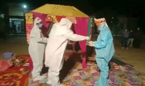 திருமணத்திற்குப் பின்னர், மணமகள் மற்றும் அவரது தாயார் கொரோனா சிகிச்சை மையத்தின் உள்ளே அழைத்துச் செல்லப்பட்டனர். மணமகளின் தந்தைக்கு கொரோனா நெகடிவ் என்று வந்ததால் அவர் வீட்டுக்கு செல்லலாம் என்று மருத்துவ ஊழியர்கள் கூறினர்.