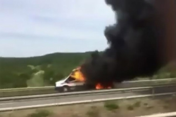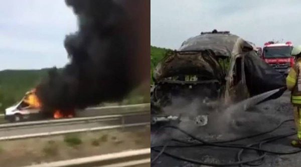 அப்போது திடீரென ஆம்புலன்சில் இருந்த ஆக்சிஜன் சிலிண்டர் வெடித்து சிதறி தீப்பற்றியுள்ளது. இதிலிருந்து தப்புவதற்காக, Necmiye உட்பட ஆம்புலன்ஸ் ஊழியர்கள் மூன்று பேர் வேகமாக வாகனத்திலிருந்து இறங்கியுள்ளனர்.
