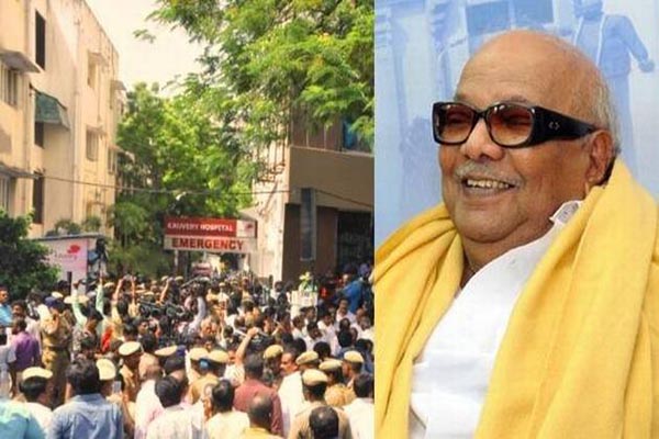5 முதல் 7 நிமிடங்களுக்கு அவரது இதயம் திடீரென நின்றுவிட்டதாகவும், அதற்கு முன்பு அவரது நாடித்துடிப்பு 20 முதல் 30 அளவுக்கும், ரத்த அழுத்தம் 40/ 60 என்ற அளவிலும் குறைந்தது.இதனால், குடும்ப உறுப்பினர்கள் வரவழைக்கப்பட்டு அனைவரும் துயரம் தாங்காமல் அழுது, கருணாநிதியின் காலை தொட்டு வணங்கினர்.