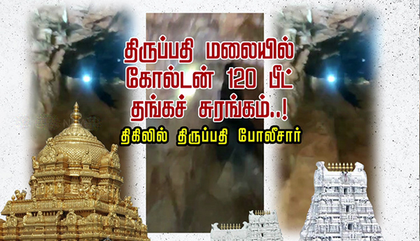 தங்க கோபுரத்துடன் ஜொலிக்கும் திருப்பதி ஏழுமலையான் கோவில் அமைந்துள்ள சேஷாசல மலைத் தொடரில் 120 அடி ஆழத்தில் கோடிக்கணக்கான ரூபாய் மதிப்புள்ள தங்கச் சுரங்கம் இருப்பதாக மந்திரவாதி ஒருவர் சொன்ன வார்த்தையை நம்பி, கடந்த ஒருவருடமாக 80 அடி ஆழத்துக்கு சட்டவிரோதமாக சுரங்கம் தோண்டிய பு.தை.யல் தி.ரு.ட.ர்கள் ஆறு பேரை போ.லீ.சா.ர் சு.ற்.றி.வளைத்துள்ளனர். செம்மரம் வெ.ட்.டு.பவர்களை தேடிய போது மண்வெட்டியுடன் சி.க்.கிய பூதங்கள் குறித்து விவரிக்கின்றது இந்த செய்தி தொகுப்பு.