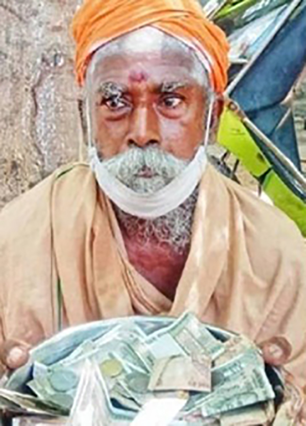 இவர், மே முதல் பி ச்சை எடுத்து சேமித்த பணம் தலா, 10 ஆயிரம் ரூபாய் வீதம் 7 முறை, மதுரை கலெக்டரிடம், கொரோனா நிவாரண நிதியாக வழங்கியுள்ளார்.