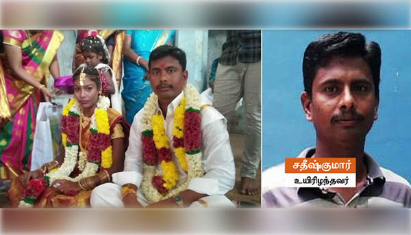 பின்னர் கலைமதி உடன் வந்த அவருடைய பெற்றோரான நாகராஜன், மருமகனை கத்தியால் குத்தி உள்ளார். இதில் சதீஷ்குமார் நிலைகுலைந்து சம்பவ இடத்திலேயே மயங்கி விழுந்து பரிதாபமாக உயிரிழந்தார்.