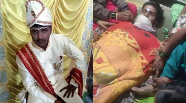 தெலுங்கானாவின் நிஜாமாபாத் நகரை சேர்ந்த கணேஷ் (25) என்பவருக்கு நேற்று திருமணம் நடைபெற்றது. இதில் ஏராளமான உறவினர்கள் கலந்துகொண்டு மணமக்களை வாழ்த்தினர்.