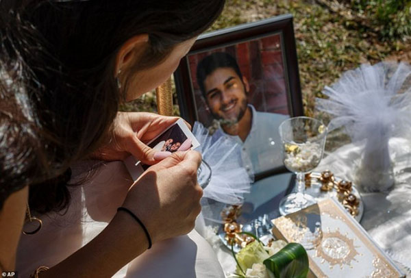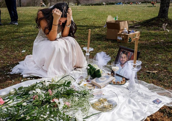 அமெரிக்காவில் திருமணம் நடைபெறுவதற்கு சில நாட்களுக்கு முன்பு காதலன் சுட்டுக்கொலை செய்யப்பட்டதால் அவருடைய கல்லறையின் முன், மணப்பெண் கோலத்தில் இளம்பெண் அழுதுபுலம்பும் புகைப்படங்கள் இணையத்தில் வைரலாக பரவி வருகின்றன.