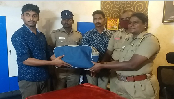 மகளின் திருமணத்தன்று 50 சவரன் நகை பறிகொடுத்து தவித்த பால் பிரைட்டிடத்தில் பின்னர் நகை பை ஒப்படைக்கப்பட்டது. நேர்மையான ஆட்டோ ஓட்டுநர் சரவண குமாரை குரோம்பேட்டை காவல் ஆய்வாளர் கோமதி, உதவி ஆய்வாளர் ராஜேஷ் ஆகியோர் பாராட்டி வெகுமதி அளித்தனர்.