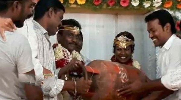 இந்நிலையில், அதே கடலூர் மாவட்டம் விருதாச்சலத்தில் நடைபெற்ற ஒரு திருமண விழாவில் மணமக்களுக்கு அவர்களின் நண்பர்கள் கேஸ் சிலிண்டரை பரிசாக கொடுத்த புகைப்படம் வெளியாகியுள்ளது.