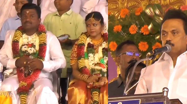 இதையடுத்து மணப்பெண்ணின் மாமனாரை மணமகன் என ஸ்டாலின் கூறிவிட்டாரே என இது தொடர்பிலான வீடியோ சமூகவலைதளத்தில் கிண்டலோடு வைரலாகி வருகிறது.