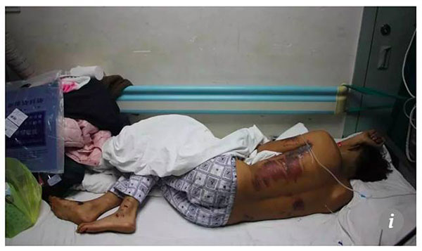 இதனை முன்னிட்டு மணமகன் Ai Guangtao இன் உடலை மைகளை தெளித்தும், முட்டைகளை அடித்தும், கயிறு மற்றும் மூங்கில் தடிகளால் அடித்து துன்புறுத்தியுள்ளனர்.