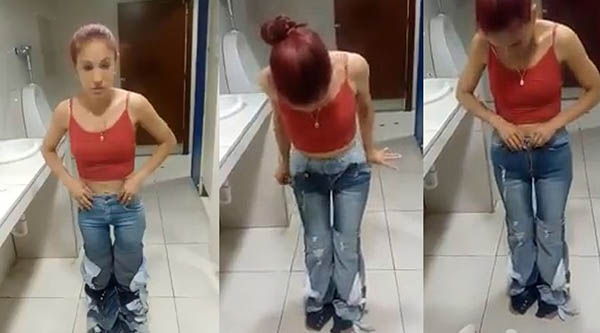 வெளியாகியுள்ள வீடியோ ஒன்றில், அவர் ஒவ்வொரு ஜீனாக கழற்ற, பின்னணியில் ஒருவர் 1,2 என எண்ணும் சத்தம் கேட்கிறது.
