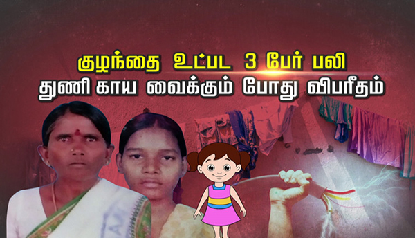 துணி காய வைக்கும் போது ஏற்பட்ட விபரீதம் : குழந்தை உட்பட 3 பேர் பலி!!