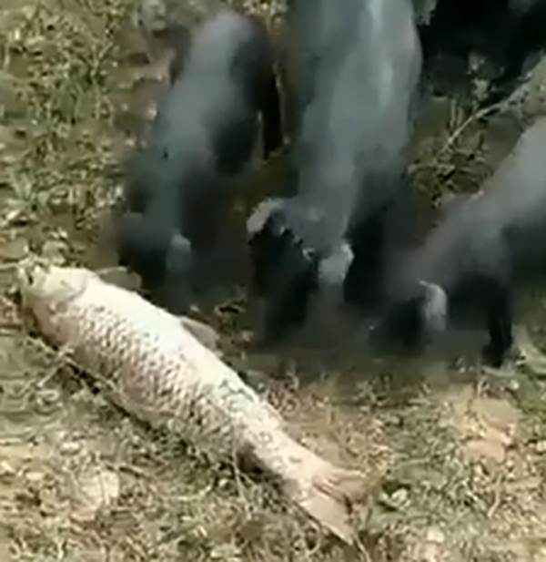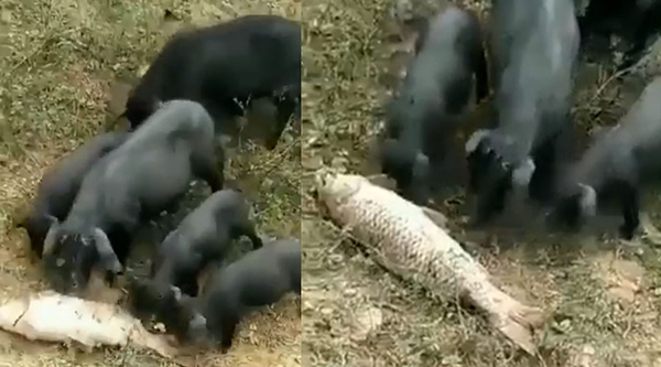 தற்போது சில கரும் பன்றி குட்டிகள் இணைந்து ஒரு மீனை கா ப்பாற்றி மீண்டும் தண்ணீருக்குள் தள்ளும் வீடியோ வைரலாகி வருகிறது.