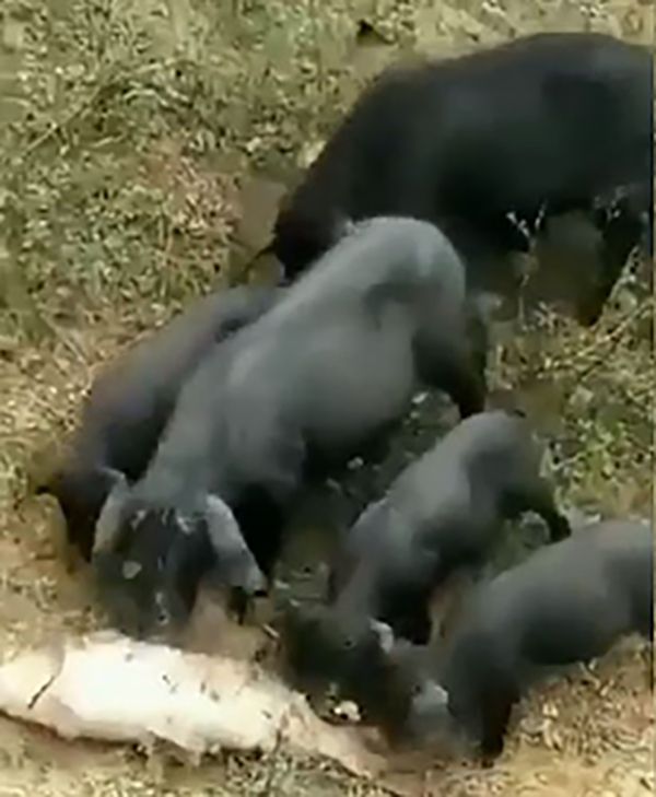 ஒரு வனப்பகுதியில் தண்ணீருக்குள் இருந்து வெளியே வந்து சுவாசிக்க தவிக்கும் மீனை, பன்றி குட்டிகள் ஒன்றிணைந்து தன் முகத்தால் உருட்டி தண்ணீற்குள் கொண்டு சேர்க்கிறது.