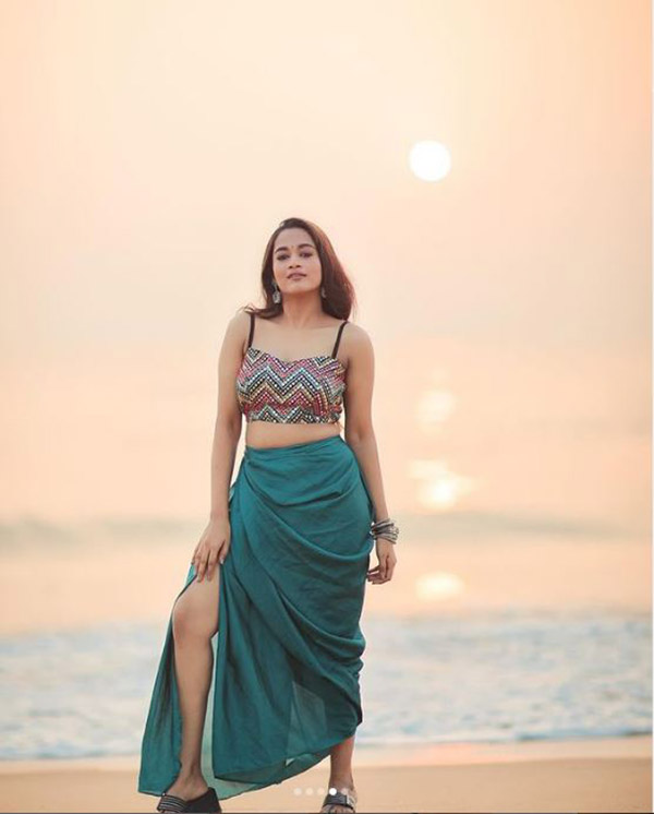 தூக்கலான கவர்ச்சியில் அந்த இடத்தை காட்டி இளசுகளின் ஹார்ட் பீட்டை எகிற வைத்த காவ்யா அறிவுமணி!!