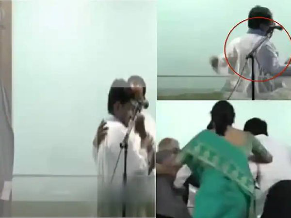 அப்போது பாதிரியார், தனது கையில் பிடித்திருந்த மைக்குடன் அந்த இளைஞரை பிடிக்க, மைக்கில் உள்ள ஒயர் சரியாக இல்லாத காரணத்தினால் இளைஞரின் ஈரமான உடம்பில் மின்சாரம் பாய்ந்தது. இதனால் அந்த இளைஞர் தண்ணீருக்குள்ளே தத்தளித்து விழுந்தார். அவருடன் சேர்ந்து ஒயர் பாதித்த மைக்கும் ஸ்டாண்டுன் தண்ணீருக்குள் விழ நிலைமை பதற்றத்திற்குள்ளானது.