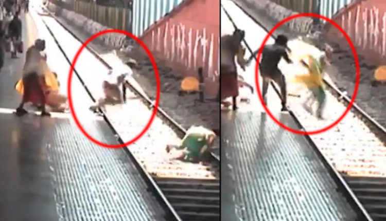 மும்பை தாதரில் த.ற்.கொ.லை செ.ய்.து.கொ.ள்.வ.தற்காக தண்டவாளத்தில் ரயில் முன் பாய்ந்த பெண் கைதியைக் கா.வ.லர் ஒருவர் உடனடியாக மீட்டுக் காப்பாற்றிய காட்சி வெளியாகியுள்ளது.