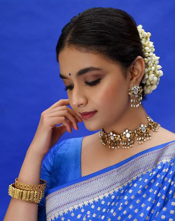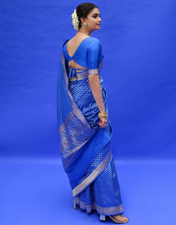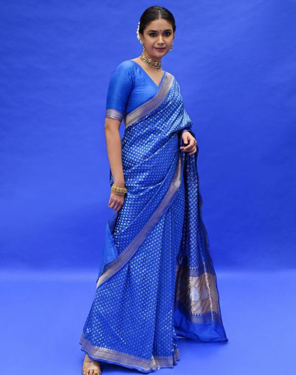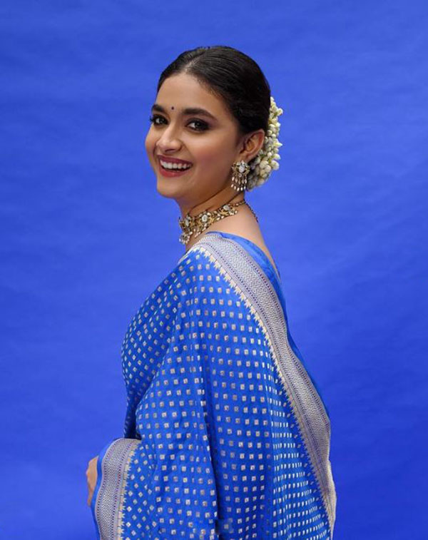 சமீபத்தில் கருணாநிதியின் கலைஞர் 100 நிகழ்ச்சியில் நடிகை கீர்த்தி சுரேஷும் கலந்து கொண்டார். க்யூட்டான நீல நிற சேலையில் வருவதற்கு முன் எடுத்த போட்டோஷூட் புகைப்படத்தை தற்போது பகிர்ந்துள்ளார்.