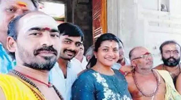 நடிகை ரோஜாவுடன் பூசாரி எடுத்த செல்பியால் வந்த பிரச்சனை : வைரலாகும் புகைப்படம்!!
