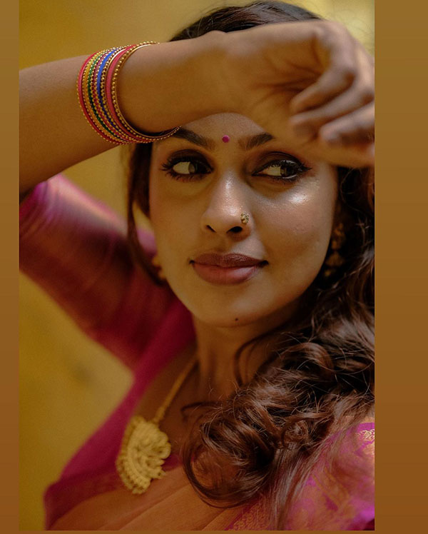 தற்போது இவர் பிங்க் கலர் பார்டர் வைத்த பட்டு சாரியில் கிளாமர் புகைப்படங்களை வெளியிட்டுள்ளார். தற்போது அந்த புகைப்படமானது இணையத்தில் வைரலாகி வருகிறது. இந்த புகைப்படத்தை பார்த்த ரசிகர்கள் கிரங்கிபோய் உள்ளனர்.