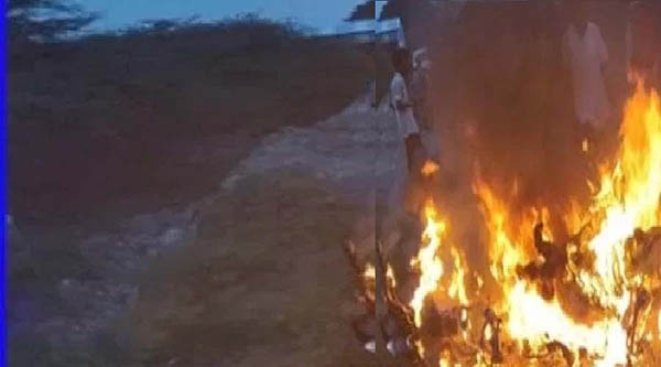 இதனையடுத்து சம்பவ இடத்திற்கு வந்த பொலிஸார் பாதி எறிந்த நிலையில் கிடந்த இளைஞரின் உடலை கைப்பற்றி பிரேத பரிசோதனைக்கு அனுப்பி வைத்தனர்.