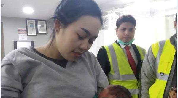 அதற்கு அனுமதி கிடைத்த உடனே விமானம் பத்திரமாக தரையிங்கியது. விமான நிலையத்தில் தயாராக இருந்த மருத்துவக்குழு வேகமாக தாய் மற்றும் குழந்தையை மீட்டு தனியார் மருத்துவமனைக்கு கொண்டு சென்றனர்.