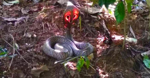 இதுகுறித்து அவினாஷ் கூறும்போது,நாய் குரைப்பதை கேட்டு தோட்டத்திற்கு சென்றபோது பாம்பு ஒன்று படமெடுத்து நிற்பதையும், அதன் பின்புறத்தில் சிவப்பு வர்ணம் காட்சி அளிப்பதையும் பார்த்து அதிர்ச்சி அடைந்தேன்.