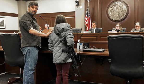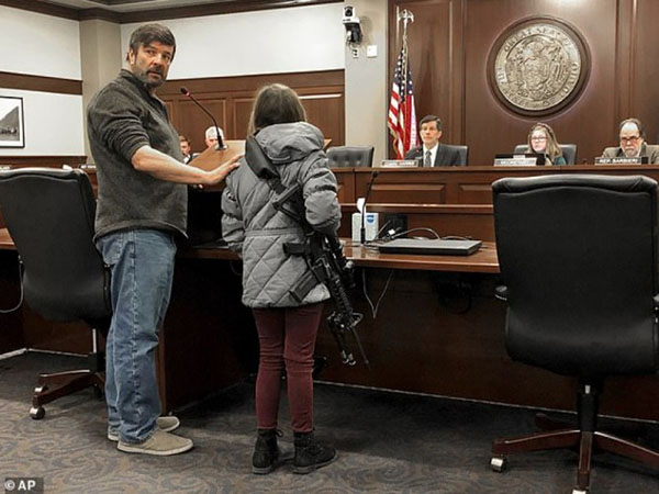 Bailey Nielsen என்ற அந்த சிறுமி, Boiseஇலுள்ள நாடாளுமன்ற உறுப்பினர்கள் முன் கு ண்டுகள் நிரப்பப்பட்ட AR-15 வகை துப்பாக்கியுடன் நின்றாள்.
