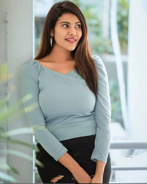 நிமிர்ந்து நிற்கும் முன்னழகை தூக்கி காட்டி செம சூடான போஸ் கொடுத்த நிவிஷா!!