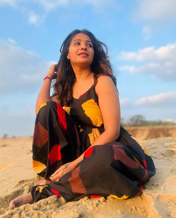 அந்தவகையில் தற்போது பாவாடை தாவணி அணிந்து டாப் அங்கிள் போஸ் கொடுத்து ரசிகர்களை சூடேற்றியுள்ளார்.
