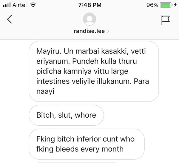 என்ன ஒரு கலாசாரம், இவ்வளவு ஆபாசமான வார்த்தைகளா? என்று தனக்கு வந்த சோதனையை டுவிட்டரில் வெளியிட்டுள்ளார்.