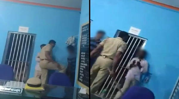 கர்நாடக மாநிலம் கோலார் கோல்ட் ஃபீல்ட்ஸ் பகுதியில் உள்ள பொலிஸ் நிலையத்தில் துணை இன்ஸ்பெக்டராக பணியாற்றி வரும் ஹானே கவுடா, 28 வயதான இளைஞர் ஒருவரை கடுமையாக தாக்கும் வீடியோ காட்சி ஒன்று இணையத்தினுள் வெளியாகியுள்ளது.