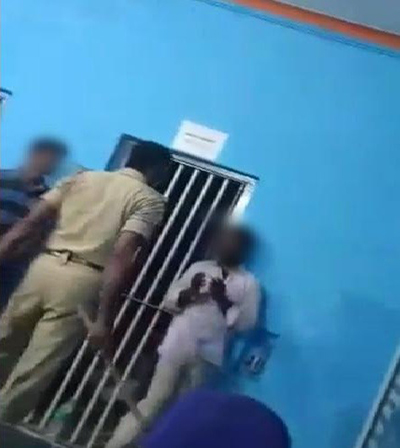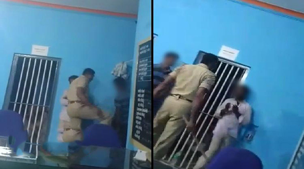 இதனை அங்கிருந்த பொலிஸார் ஒருவர் வீடியோவாக எடுத்து வெளியிட்டுள்ளார். இந்த வீடியோவானது பேரும் பரபரப்பை ஏற்படுத்தியிருந்த நிலையில், இளைஞர்கள் இரண்டு பெரும் கடந்த வாரம் கைது செய்யப்பட்டதும், தினமும் இரவு நேரம் அவர்களை தாக்கி வருவதும் தெரியவந்துள்ளது. இந்த சம்பவம் குறித்து தற்போது விரிவான விசாரணை நடத்தப்பட்டு வருவதாக எஸ்.பி. லோகேஷ் தெரிவித்துள்ளார்.