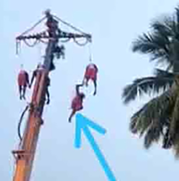 நேர்த்திக்கடன் செலுத்தியபோது, 40 அடி உயர கிரேனிலிருந்து திடீரென கீழே விழுந்த இளைஞர்!!