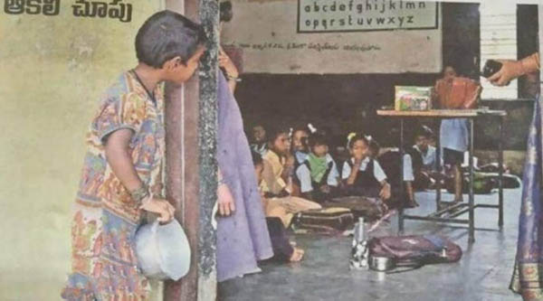 ஹைதரபாத்தின் Gudimalkapur-ல் இருக்கும் Deval Jham Singh அரசு மேல்நிலை பள்ளி உள்ளது. இந்த பள்ளியில் இருக்கும் வகுப்பறைக்கு வெளியே பசியால் இருக்கும் சிறுமி ஒருவர் உள்ளே ஆசிரிய சொல்லித் தரும் பாடத்தை கவனிப்பது போன்ற புகைப்படம் பிரபல ஊடகம் ஒன்றில் செய்தியாக வெளியிடப்பட்டது.