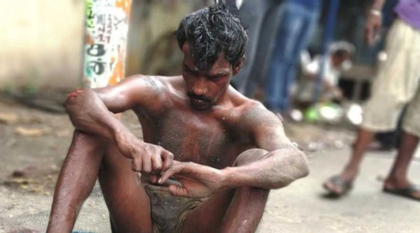 இதனைப் பார்த்து அதிர்ந்துபோன பொதுமக்கள், ஓடிவந்து அந்த போதை ஆசாமியை நையப் புடைத்து, அவனிடமிருந்து சிறுவனைக் காப்பாற்றியியுள்ளனர். சிறுவனின் உடலில் இருந்து ரத்தம் கொட்டியதைக் கண்டு கோபமடைந்த பொதுமக்கள், ஆத்திரம் தாங்காமல் அந்த ஆசாமியை விரட்டிப் பிடித்து அடித்துள்ளனர்.