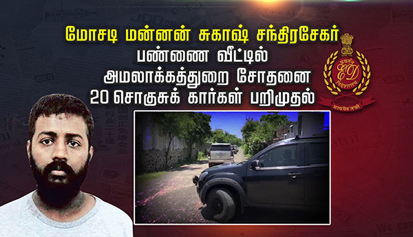 அத்தோடு, சட்டவிரோத பணபரிமாற்றம் என்ற சட்டப்பிரிவில் அமலாக்கத் துறையும் வழக்கு பதிவு செய்து சுகாஷ் சந்திரசேகர் தொடர்பான இடங்களில் சோதனை மேற்கொண்டது.