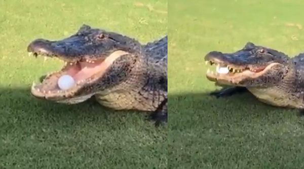 கோல்ஃப் மைதானத்தில் மு த லை ஒன்று பந்தை டைவ் அ டி த்து கேட்ச் பி டி க்கும் வீடியோ இணையத்தில் வை ரலாகி உள்ளது.