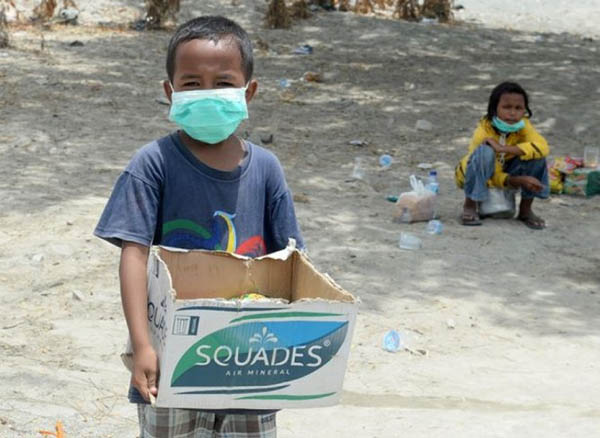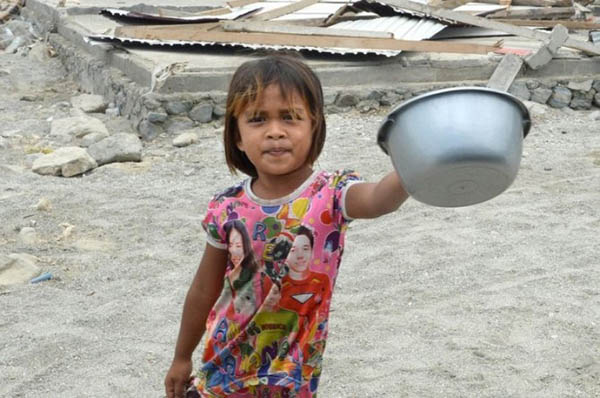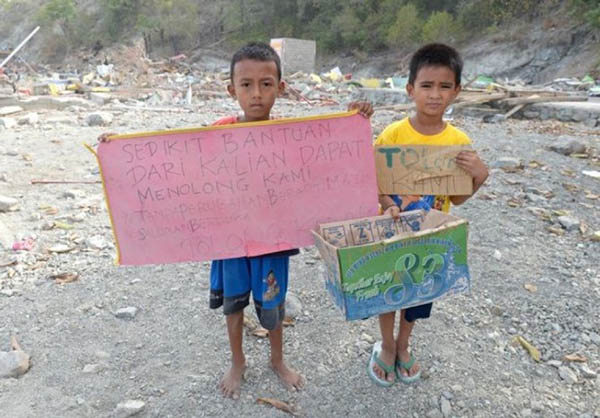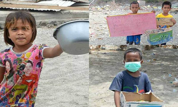 இந்தோனேஷியாவில் நிலநடுக்க மற்றும் சுனாமியின் பாதிப்பு காரணமாக நூற்றுக்கும் மேற்பட்ட குழந்தைகள் சாப்பிட்டிற்காக பிச்சை எடுப்பது தொடர்பான புகைப்படங்கள் வெளியாகி காண்போரை கண்கலங்க வைத்துள்ளது.