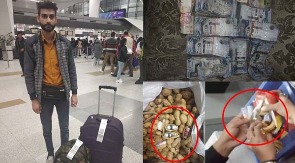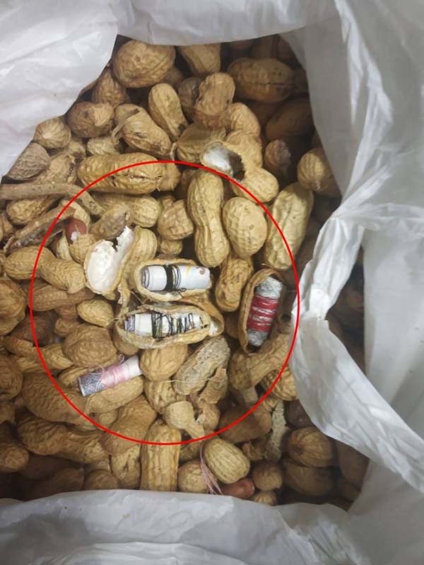 அப்போது அவருடைய பையில் இருந்த கடலையை அதிகாரிகள் உடைத்து பார்த்த போது, உள்ளே வெளிநாட்டு பணங்கள் சுருட்டி வைக்கப்பட்டிருந்ததைக் கண்டு அ திர்ச்சியடைந்தனர்.