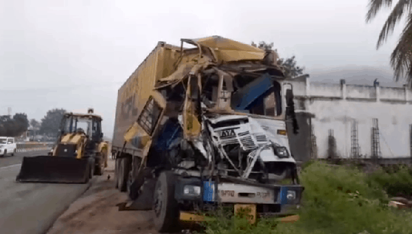 இவ் விப த் தில் பார்சல் லோ டு ஏ ற்றி ச் செ ன்ற ஆந்திர மாநிலம் கு ண் டூ ர் ப குதி யை சேர்ந்த லா ரி ஓட்டுநர் பாலையா மற்றும் மகாராஷ்டிரா மாநிலத்தை சேர்ந்த கோபால் ஆகிய இ ரு வர் ச ம் பவ இ ட த்தி லே யே உயி ரி ழ ந்தனர்.