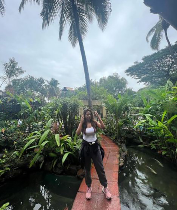 ஸ்லீவ்லெஸ் உடையில் தேக்கு செதுக்கி வைத்த சிலை போல இருக்கும் இவருடைய கை தொடைகள் ரசிகர்களின் கண்களுக்கு பளிச்சென தெரிகின்றது. இந்த புகைப்படங்களை பார்த்த ரசிகர்கள் அம்மணியின் அழகை வர்ணித்து கிறுகிறுத்து வருகின்றனர்.