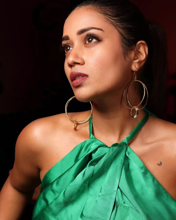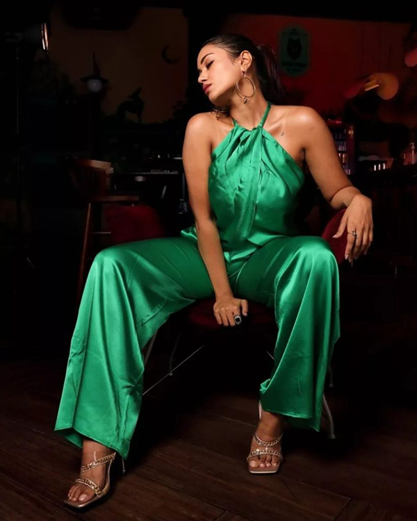 இந்த உடைக்கு ஏற்றால் போல அளவான மேக்கப் போட்டிருக்கும் நிவேதா பெத்துராஜ் கண்களுக்கு கவர்ச்சி கன்னியாக தோற்றமளிக்கிறார். மட்டுமில்லாமல் இவருடைய காதுகளை அலங்கரிக்கும் விதமான கூர்மையான ஆணிகள் போன்று தங்கத்தால் ஆன தோடுகள் அவருடைய காதணியை மட்டும் இல்லாமல் அவருடைய காதையும் சேர்த்து அழகாக்குகிறது.