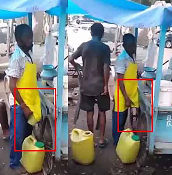 ஆத்கோன் பகுதியல் சாலையோரத்தில் பானிபூரி கடை நடத்தி வரும் கடைக்காரன், தனது சிறுநீரை ஒரு கப்பில் பிடித்து அதை பானிபூரியில் கலக்கும் வீடியோ காட்சிகள் பதிவாகியுள்ளது.