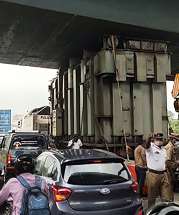 சென்னை துறைமுகத்தில் இருந்து ஸ்ரீபெரும்புதூர் கொண்டு செல்லப்பட்ட அந்த மின்மாற்றியின் மேற்பகுதி மதுரவாயல் மேம்பாலத்தின் கீழ் சி க் கி நகர முடியாமல் நின்றது.